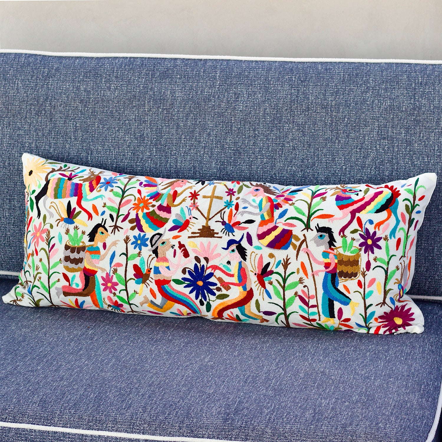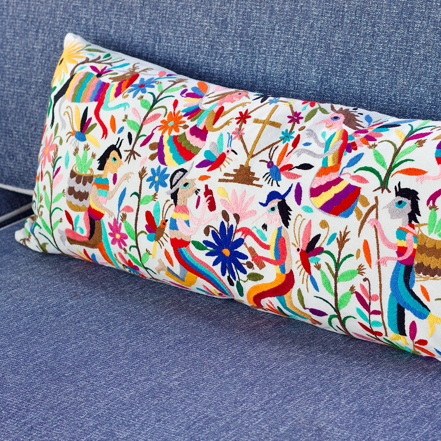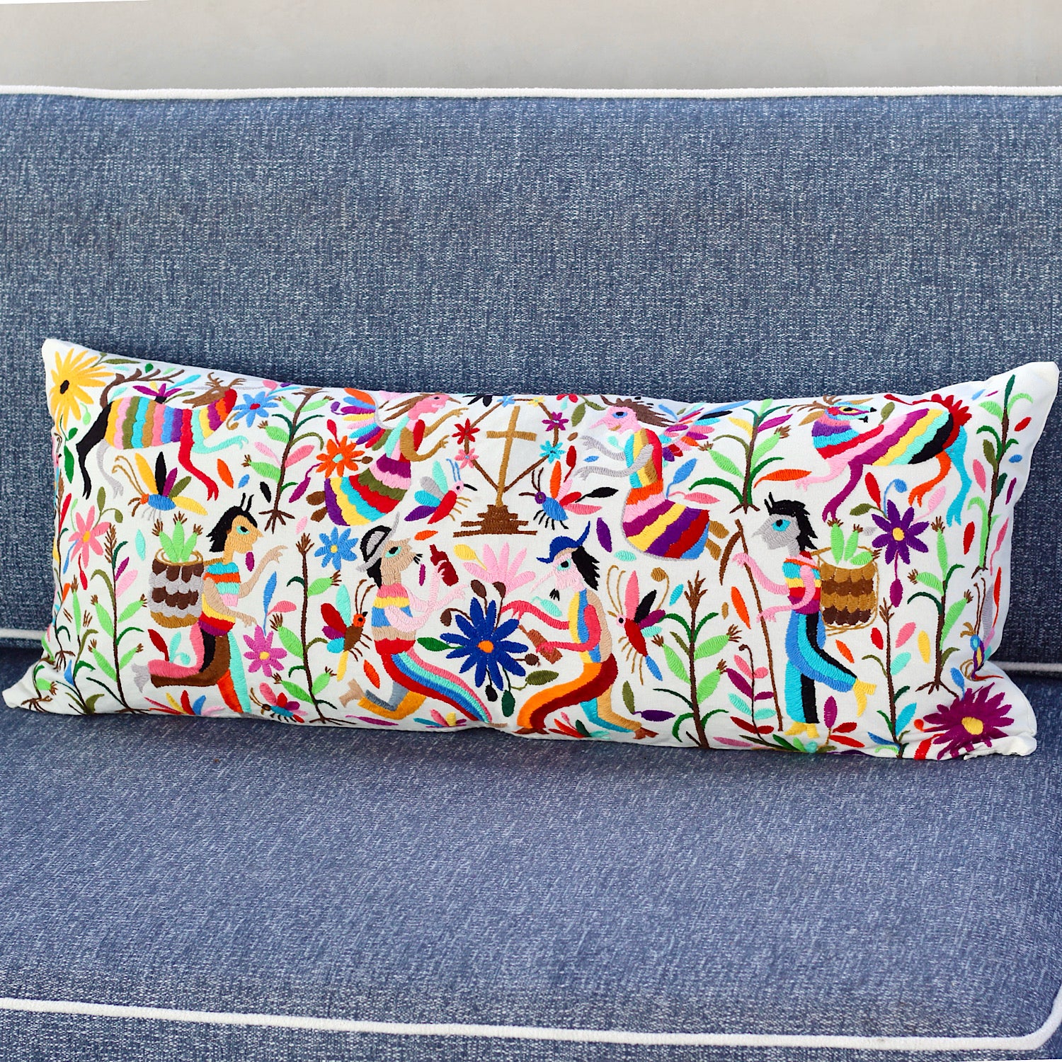 Otomi Lumbar Pillow Cover – Handmade Tenango Embroidery