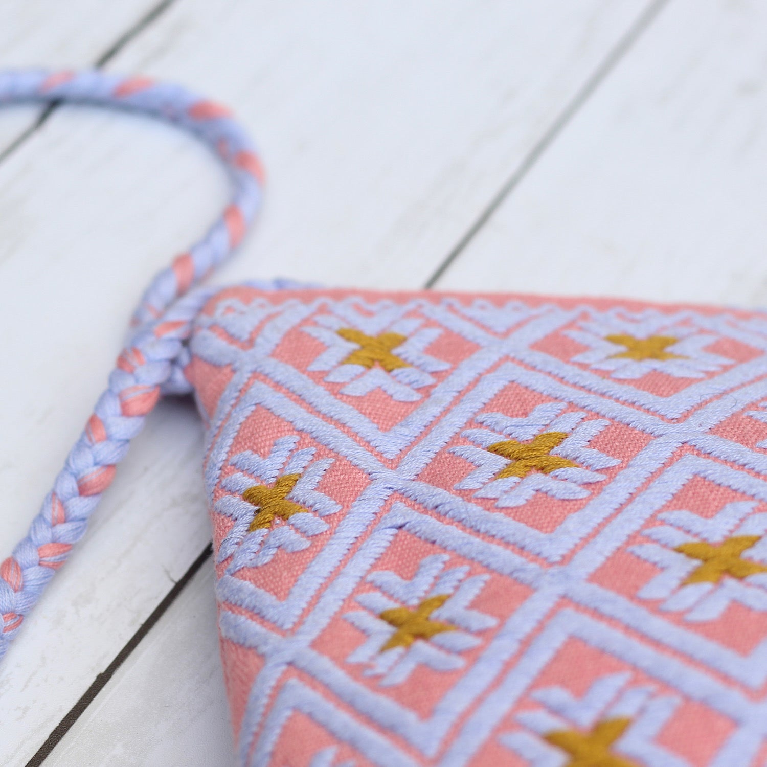 Each piece is woven on a traditional backstrap loom using 100% cotton threads and features a braided shoulder strap made from the same colorful threads — perfect to wear comfortably across the body.